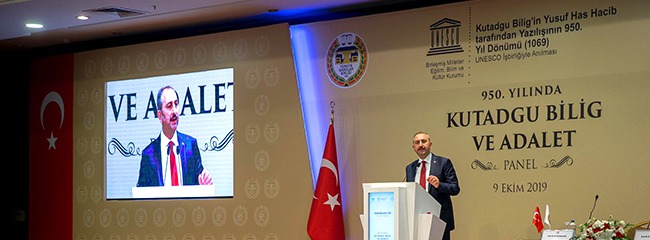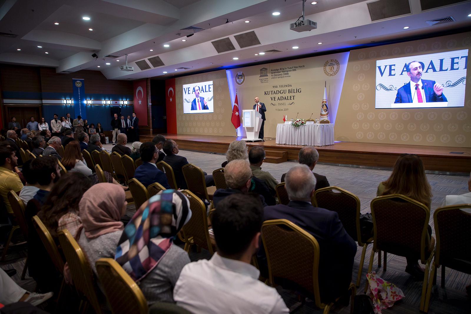 Adalet Bakanı Abdulhamit Gül, Türkiye Barolar Birliği (TBB) tarafından düzenlenen ‘950. Yılında Kutadgu Bilig ve Adalet Paneli’nde konuştu. Adalet Bakanı Gül, Yusuf Has Hacip'in bir siyasetname niteliği taşıyan, yol gösterici olan ‘Kutadgu Bilig’ adlı eserinin önemli bir örnek olduğuna dikkati çekerek, aradan bin yıl geçtikten sonra da adaletin nasıl iyi tecelli edeceğinin arayışı içerisinde bulunulduğunu dile getirdi. İnsanlığın her zaman adalet duygusuyla ayakta durduğunu vurgulayan Bakan Gül, "İnsan susuz, ekmeksiz, aşsız kalabilir ama adaletsiz asla ayakta kalamaz." değerlendirmesinde bulundu.