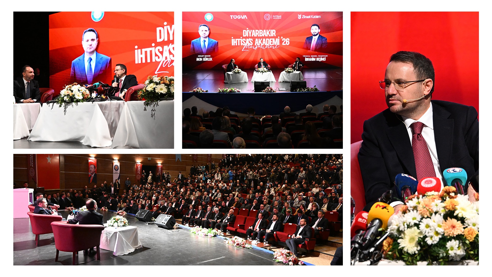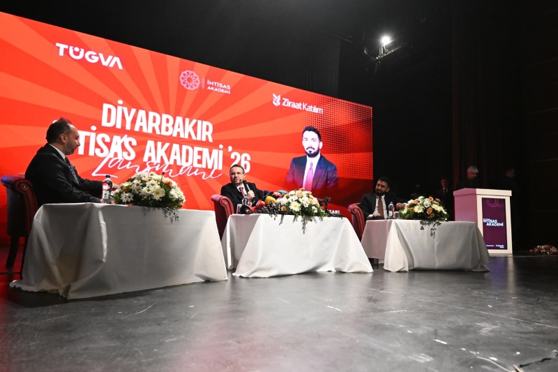 Bakan Gürlek, Diyarbakır'daki temasları kapsamında Dicle Üniversitesi 15 Temmuz Kültür ve Kongre Merkezi'nde düzenlenen TÜGVA İhtisas Akademi Lansman Programı'na katıldı.