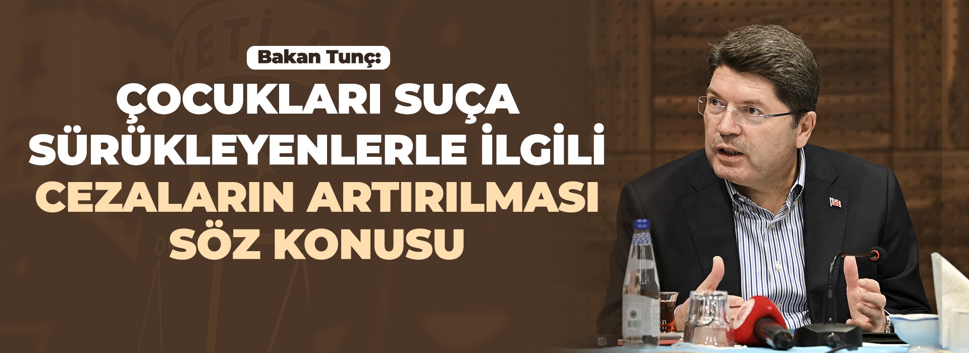 Adalet Bakanı Yılmaz Tunç, 11. Yargı Paketi'nde yer alan teklifle örgüt faaliyeti çerçevesinde çocuklara suç işleten örgüt yöneticilerinin 30 yıla kadar hapis cezası alabileceklerini belirterek “Çocukları suça sürükleyen, suçta çocukları araç olarak kullananlarla ilgili cezaların arttırılması söz konusu." dedi.