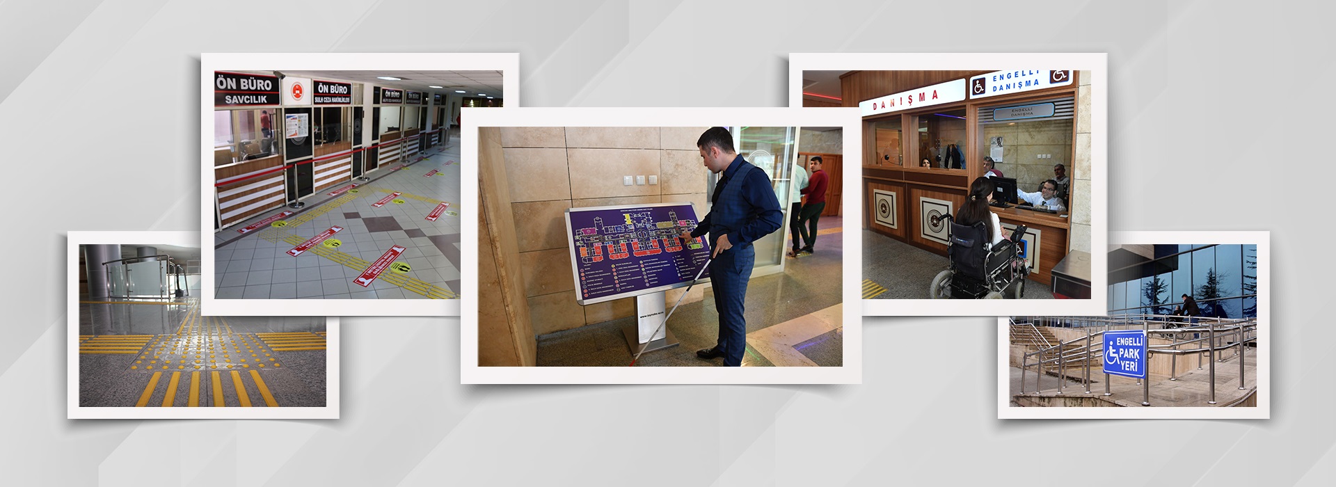 Türkiye genelinde birçok adliyede engellilerin binayı rahat bir şekilde ve engelsiz olarak kullanmaları için rampalar, hissedilebilir yürüme yüzeyleri, bina girişine yakın yerlerde engelli otoparkı, merdiven ve rampalarda engelli kullanımına uygun küpeşteler bulunuyor. Birçok adliyede de engelli vatandaşlar girişte bulunan Engelli Danışma Bürosundan bilgi alabiliyor, gitmesi gereken yer ve yapması gereken işlemler hakkında personel tarafından bilgilendiriliyor. Ayrıca engelli vatandaşlar ön büroda yer alan ‘Engelsiz Banko’ ile ihtiyaç duyduğu, erişimine açık belgeleri Braille alfabesi ile yazılı bir şekilde teslim alabiliyor.