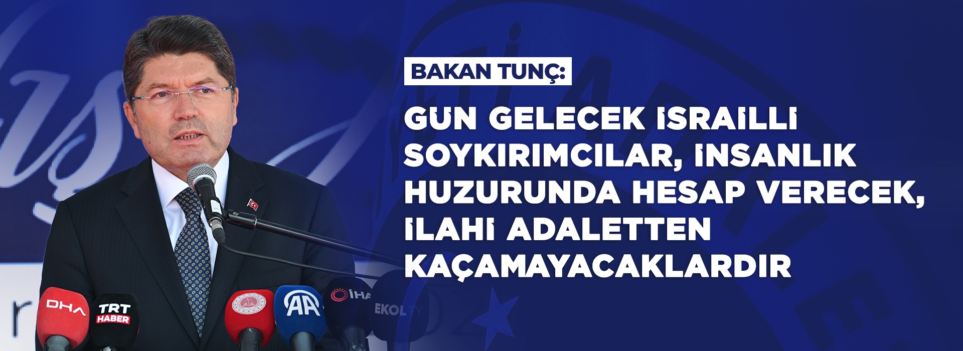 Adalet Bakanı Yılmaz Tunç, "Nasıl Bosna soykırım suçluları yıllar sonra kurulan uluslararası mahkemede zindana atılmışlarsa, gün gelecek İsrailli soykırımcılar, o teröristler insanlık huzurunda hesap vereceklerdir, ilahi adaletten de kaçamayacaklardır." dedi.