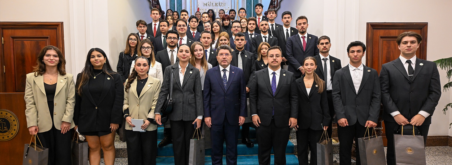 Adalet Bakanı Tunç, İzmir Ekonomi Üniversitesi Siyaset Platformu Kulübünün öğrencileriyle Bakanlıkta bir araya geldi. Bakan Tunç, öğrencilere mesleklerini önemseyen, adaletli ve hakkaniyetle kişiler olarak icra etmeleri yönünde tavsiyede bulundu.
