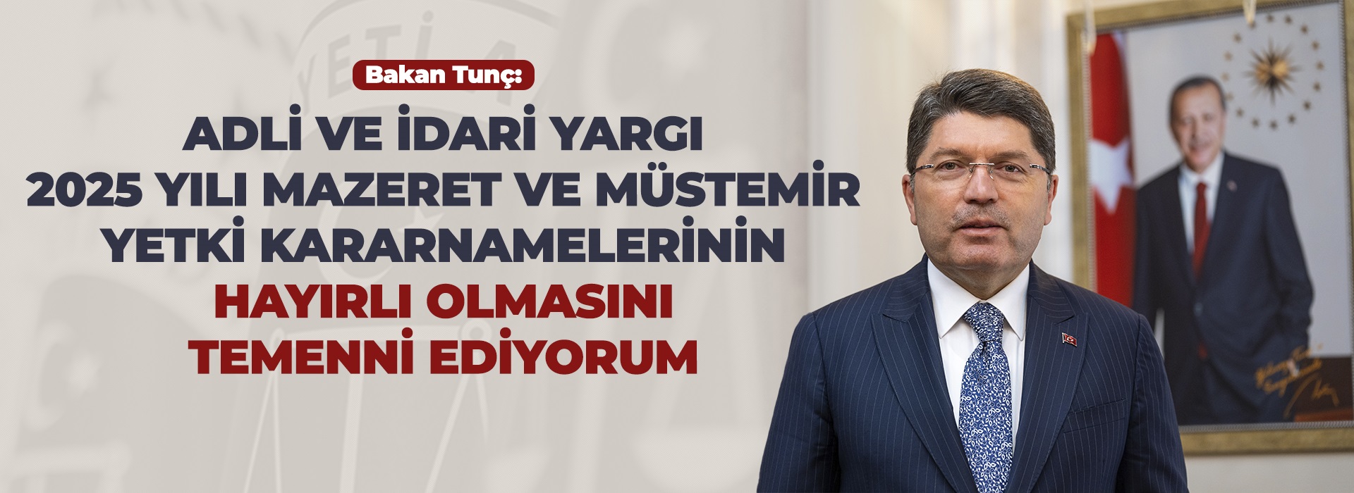 BAKAN TUNÇ: ADLİ VE İDARİ YARGI 2025 YILI MAZERET VE MÜSTEMİR YETKİ KARARNAMELERİNİN HAYIRLI OLMASINI TEMENNİ EDİYORUM