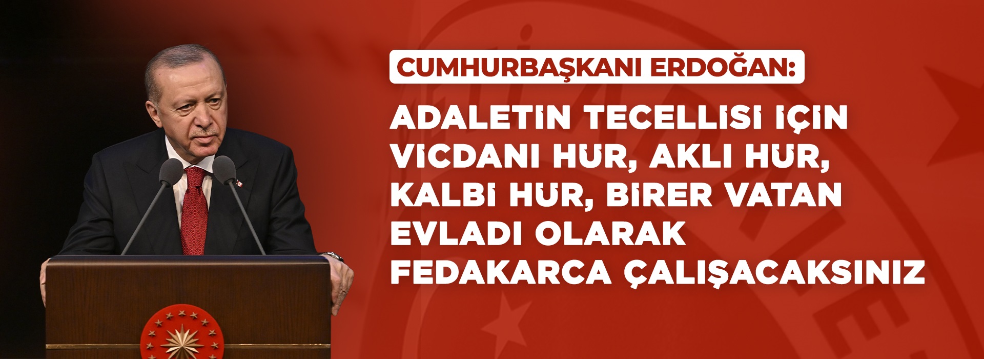 CUMHURBAŞKANI ERDOĞAN: ADALETİN TECELLİSİ İÇİN VİCDANI HÜR, AKLI HÜR, KALBİ HÜR, BİRER VATAN EVLADI OLARAK FEDAKARCA ÇALIŞACAKSINIZ