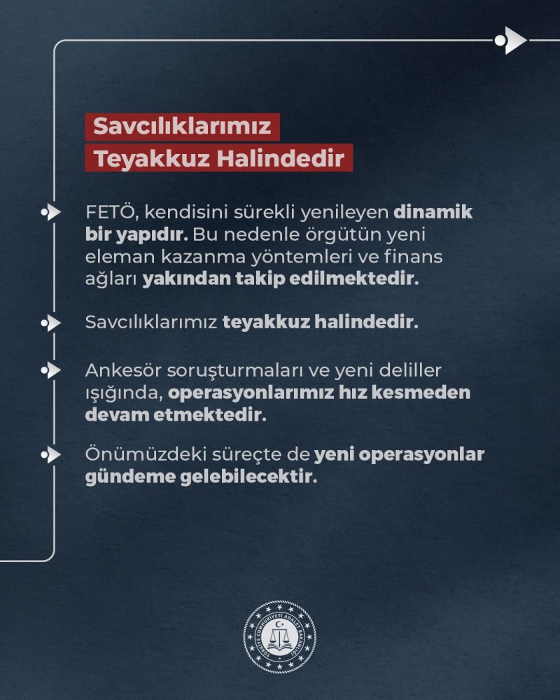 Savcılıkların teyakkuz halinde olduğunu belirten Gürlek, ankesör soruşturmaları ve yeni deliller ışığında operasyonların hız kesmeden devam edeceğini ifade etti. Yakın dönemde yeni operasyonların gündeme gelebileceğinin de sinyalini verdi.