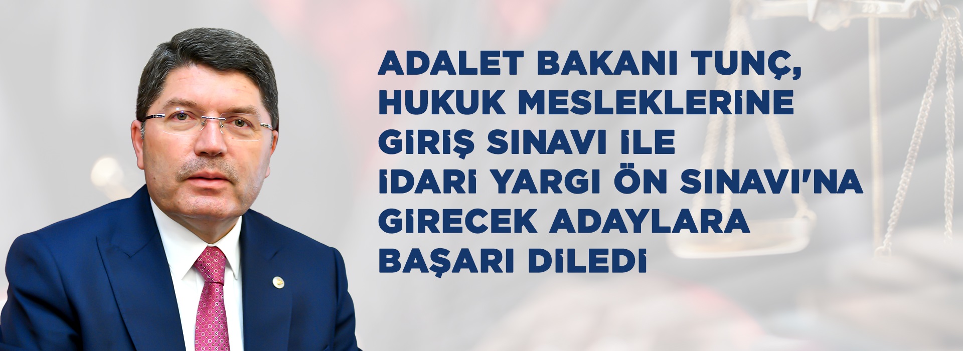 Adalet Bakanı Yılmaz Tunç, yarın yapılacak Hukuk Mesleklerine Giriş Sınavı ile İdari Yargı Ön Sınavı'na girecek adaylara başarı diledi.